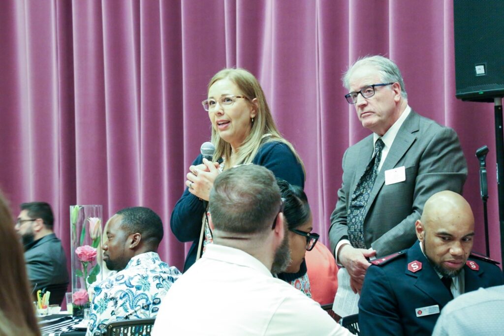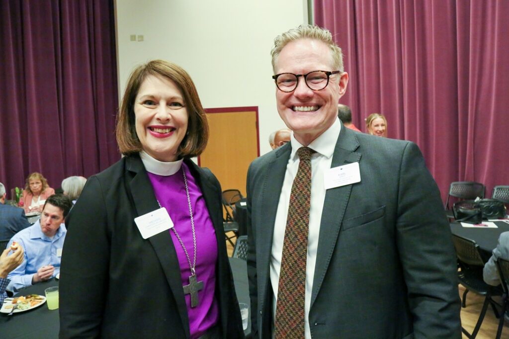 Bishop Meghan Johnston-Aelabouni, Bishop of Rocky Mountain Synod of the Evangelical Lutheran Church in America and Elder Karl D. Hirst, Second Counselor in the Area Presidency of the United States Central Area of The Church of Jesus Christ of Latter-day Saints at Lamb of God Community Leaders Reception. University of Denver’s Newman Center for the Performing Arts, March 26, 2026. Photo by Corey Christiansen.