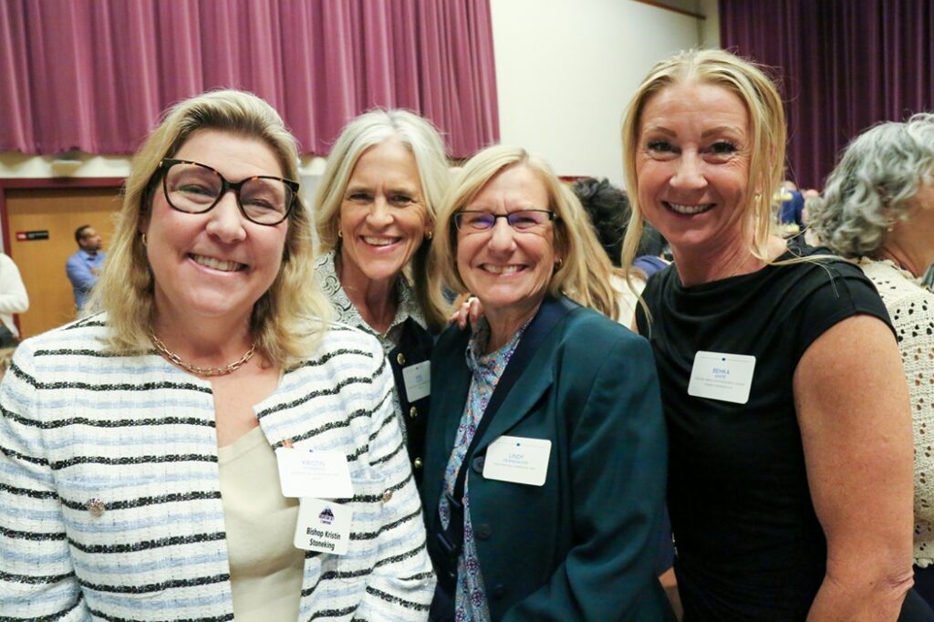 Bishop Kristin Stoneking, Mountain Sky Conference Bishop of United Methodist Church, Heidi Staheli, Church of Jesus Christ of Latter-day Saints Denver Metro Communication Director, Lindy Dearasaugh, and Behka White, Interfaith Representative of Metro Denver Church Communication Council at Lamb of God Community Leaders Reception, March 26, 2026, Newman Center at the University of Denver. Photo by Corey Christiansen.