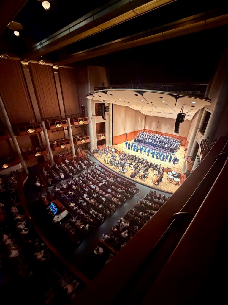 March 26, 2026. View from the balcony of Rob Gardner’s Lamb of God at University of Denver’s Newman Center for the Performing Arts. Photo by Paul Archer.